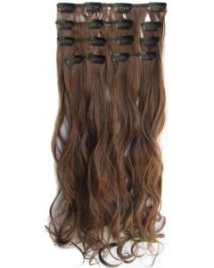 Met deze set hairextensions creëer je moeiteloos een prachtige, volle haardos in de kleur en stijl die bij jou past. Transformeer je look in een handomdraai! De sets bestaan uit zeven verschillende banen met clips, waarmee je de extensions in lagen in je haar kunt aanbrengen. De extensions zijn vervaardigd uit hoogwaardig synthetisch haar en hebben de lengtes: 17 cm (1x), 15 cm (2x), 10 cm (2x) en 5 cm (2x).